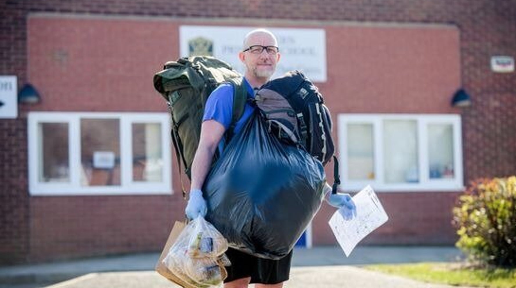ロックダウンが続くイギリスで、一人の先生が、低所得家庭の子どもたちに毎日徒歩で給食を届けている。