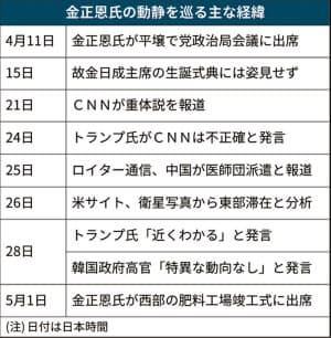 その後も様々な報道が相次ぐなかで、米国時間27日にはトランプ米大統領が記者会見で「そう遠くないうちに(動静が)わかるだろう」と述べ、健康不安説を否定した。韓国政府も28日に「北朝鮮に特異な動向はないと自信を持って言える」(政権幹部)と発言していた。