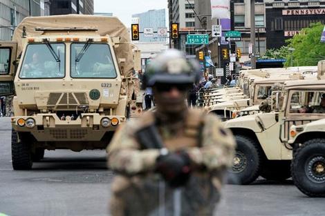 <全米に広がる暴動を制圧するためなら軍の派遣も辞さない、と宣言したトランプは、すでにホワイトハウスがあるワシントン一帯に近隣の州兵部隊を集め、連邦政府の指揮下に入れている>