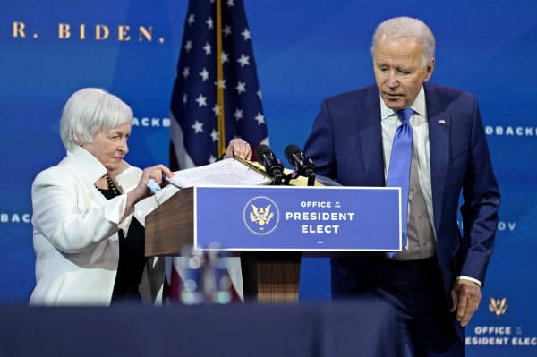 バイデン氏は地元の米東部デラウェア州で、次期財務長官に指名したイエレン米連邦準備理事会(FRB)前議長ら経済チームと演説に臨んだ。イエレン氏は「我々は生命を失い、職を失う歴史的な危機にある」と述べ、財務長官として中小企業の救済や雇用の立て直しに尽力する考えを表明した。