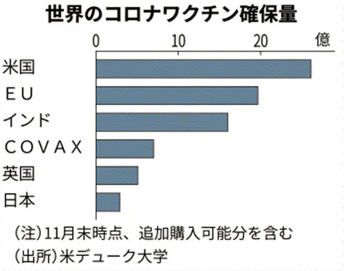 発展途上国ではコールドチェーンの整備だけでなく、ワクチンそのものをどう確保するかという課題がある。国際的なワクチン買い取りの枠組み「COVAX(コバックス)」が、計39億人の人口を抱える92カ国の低・中所得国向けに確保しているのはわずか7億回分だ。