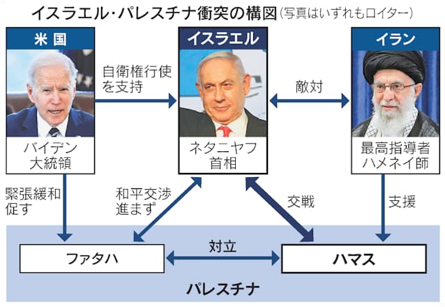 【カイロ=久門武史、ワシントン=中村亮】イスラエルのネタニヤフ首相は15日、パレスチナ自治区ガザへの空爆継続を宣言した。同日にはAP通信などが入るビルを破壊、16日も空爆を続けた。バイデン米大統領はイスラエル、パレスチナ首脳と相次ぎ電話協議し、緊張緩和を求めたが衝突に歯止めをかけられずにいる。