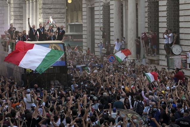 イタリアでは7月に入って感染者が増えている。伊保健省が22日発表した1日あたりの新規感染者は5057人と1週間前に比べ倍増した。サッカー欧州選手権のイタリア代表の優勝を受け、多くの人が密になって祝い、首都ローマで12日に開かれた優勝パレードでも人だかりができた。これによって感染が広がったとの声は多い。